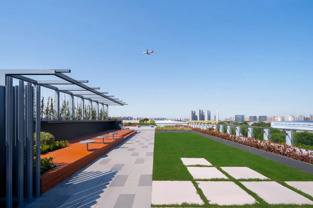 人本化:空间兼具功能性与舒适度,如五层办公楼、屋顶花园、屋面停车场等;40台公共新能源充电桩,为租户及社区提供便利。